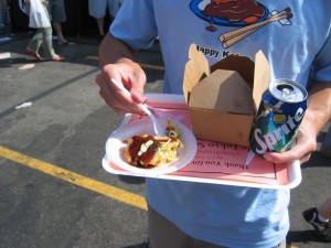 The product is packaged in a gold plastic container and has one of the following stamps on the bottom: “Enjoy by 12/10/10, Mfg with pride pl #44-50, Peanut Butter Chocolate Chip Sample” or “Enjoy by 12/10/10, Mfg with pride pl #44-50″.